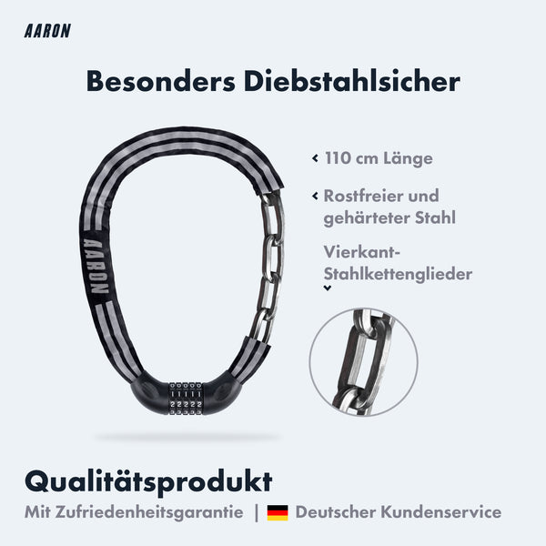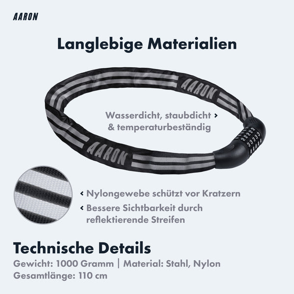 AARON Reflect Fahrradschloss mit Zahlencode - 110 cm lang
