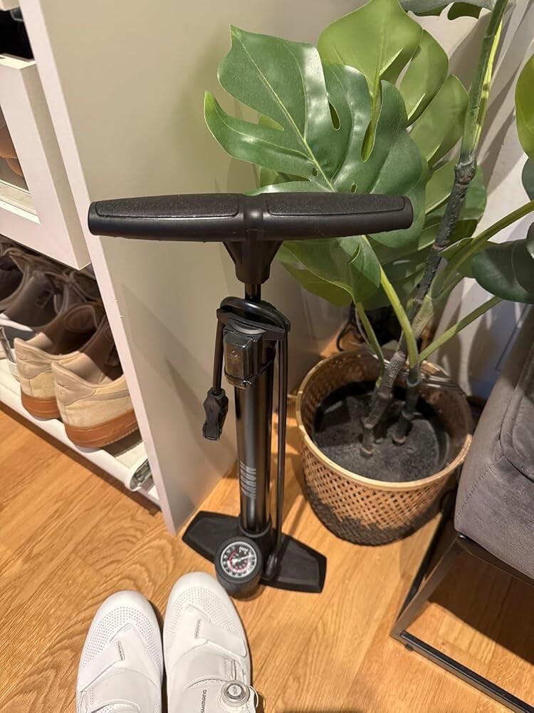 AARON AIR+ Standpumpe mit Manometer mit Ball-Aufsatz und Repair Kit, Schwarz
